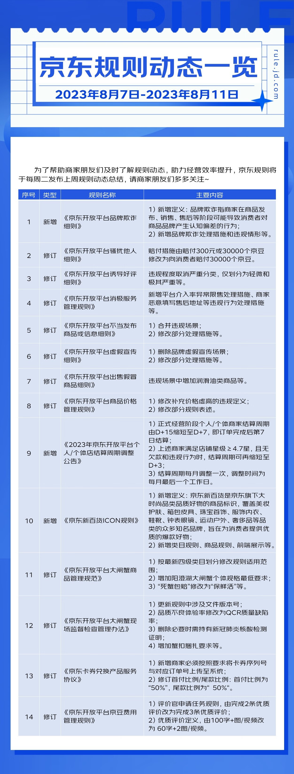 京东规则动态一览(2023年8月7日-2023年8月11日)
