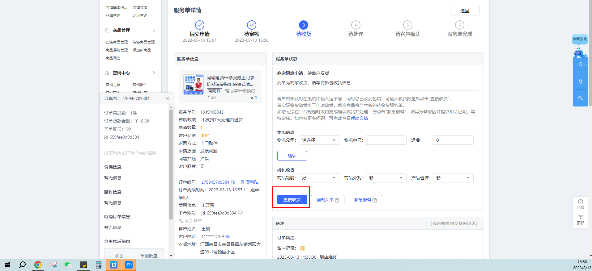 千万不要点“物流信息”栏中的确认,不然京东物流会自动根据订单地址上门取件打电话给客户!!!