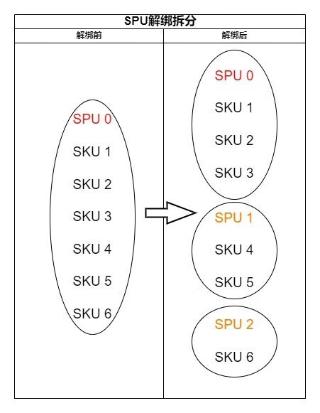 解绑规则:SKU保持不变,对应的SPU会由系统进行重新梳理。